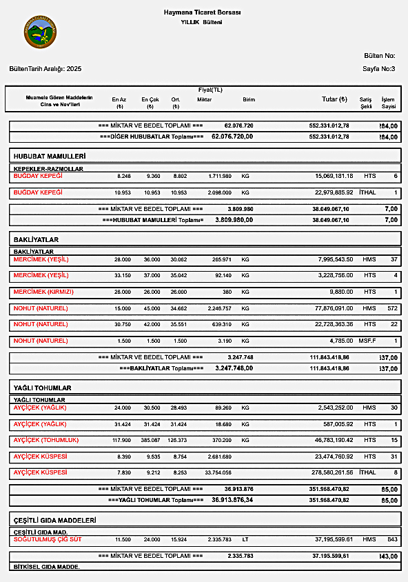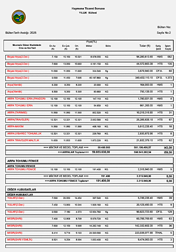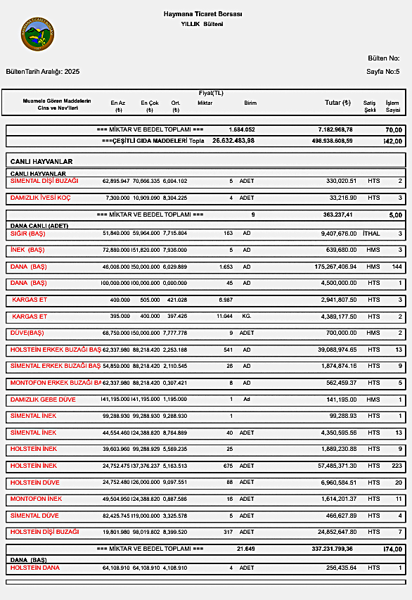 BÜLTEN/FİYAT